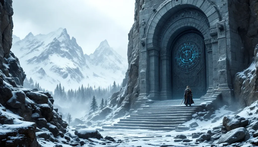 Labyrinthian is a massive Nordic ruin located in the mountains of Hjaalmarch, southeast of Morthal. Once the thriving city of Bromjunaar, it now stands as a crumbling testament to the ancient Nordic mages who studied here under the legendary Arch-Mage Shalidor. The site is central to the College of Winterhold questline, specifically the quest “The Staff of Magnus,” where players must retrieve the titular staff from the Dragon Priest Morokei.